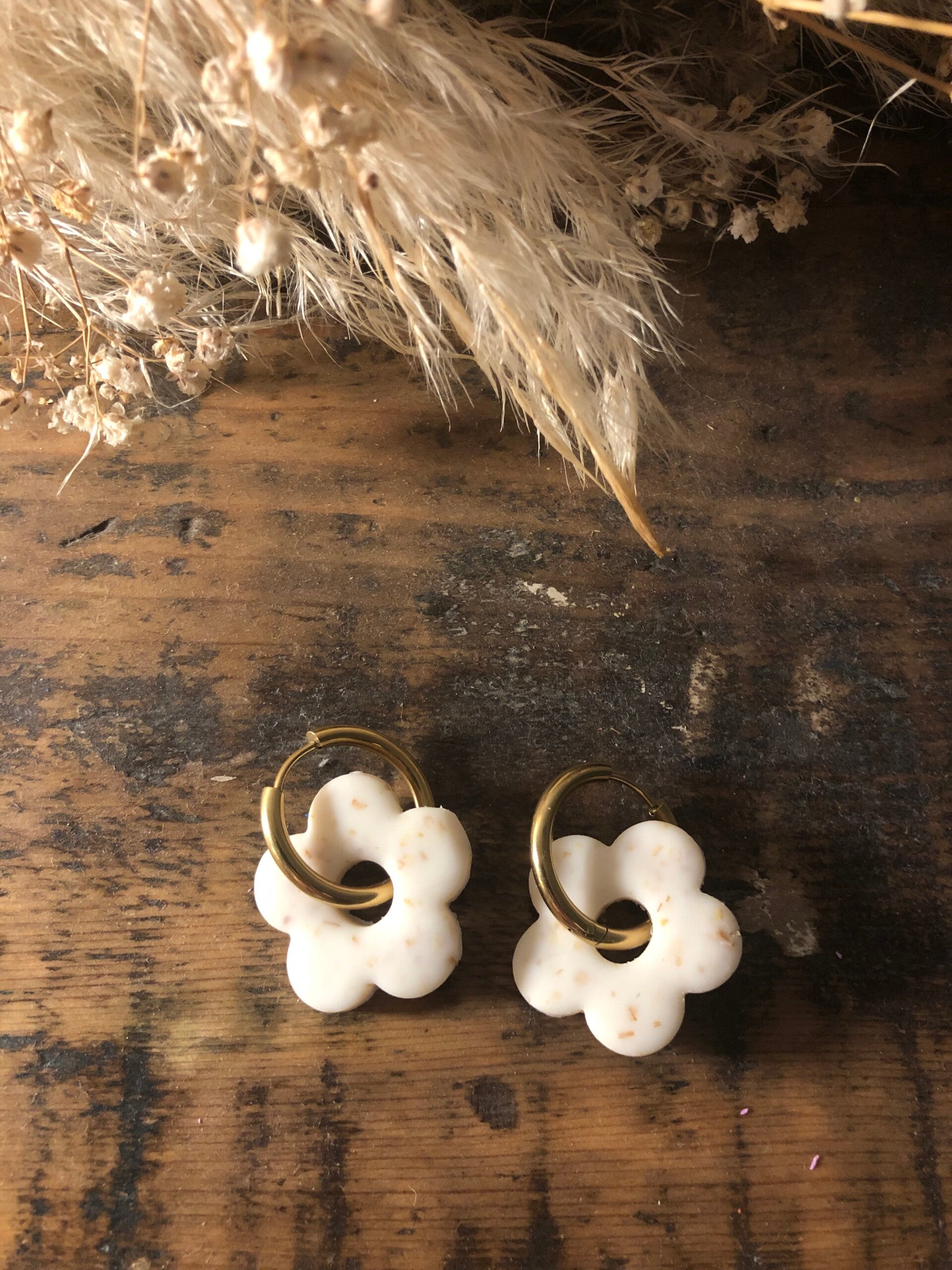 Bijoux fait main en acier inoxydable. Toutes les paires sont fabriquées à la main dans mon atelier dans le sud de la France. Vous pourrez adapter la fleur à toutes vos tenues grâce au large choix de couleurs disponible ! Les pampilles sont interchangeables !