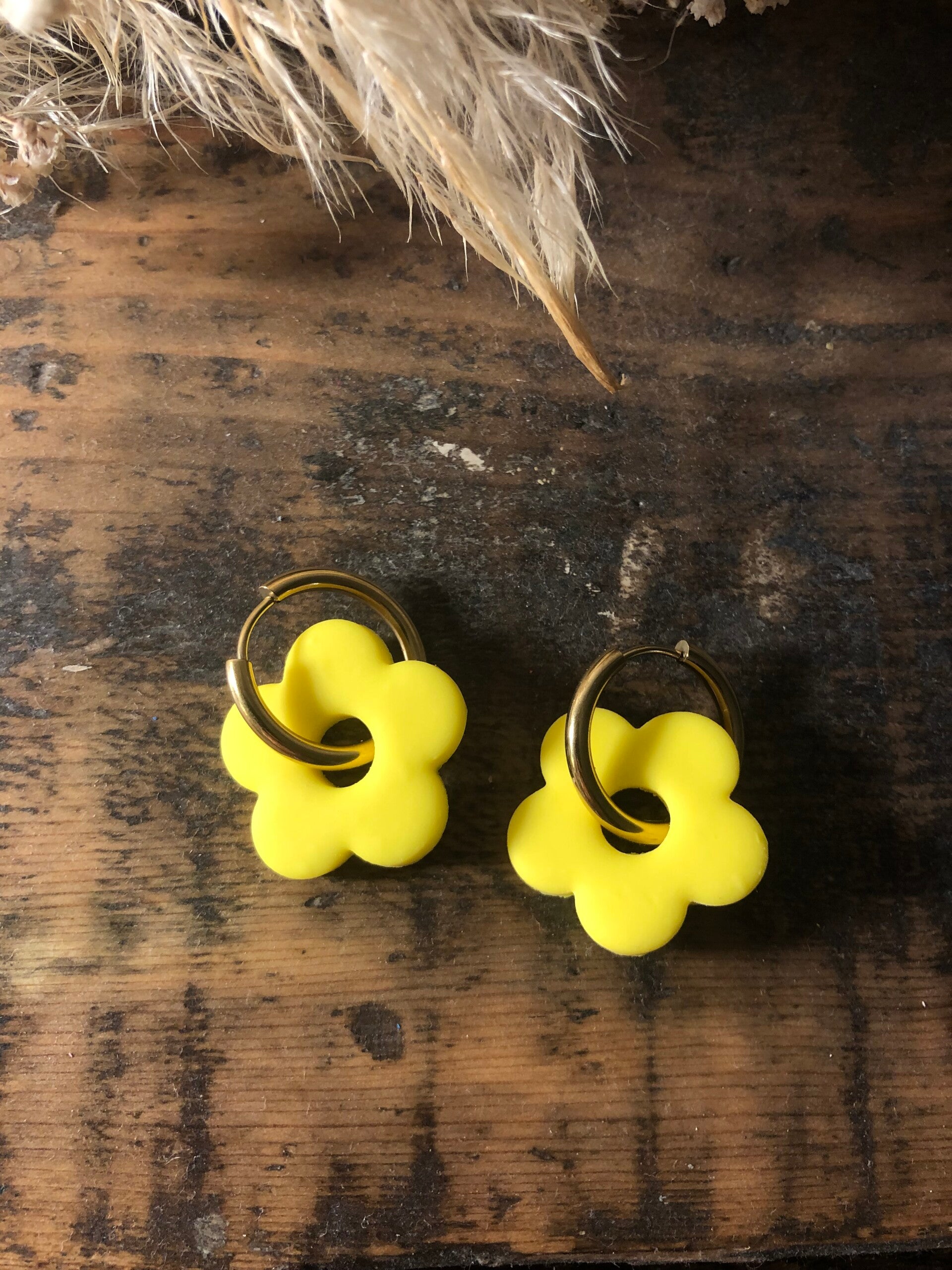 Bijoux fait main en acier inoxydable. Toutes les paires sont fabriquées à la main dans mon atelier dans le sud de la France. Vous pourrez adapter la fleur à toutes vos tenues grâce au large choix de couleurs disponible ! Les pampilles sont interchangeables !