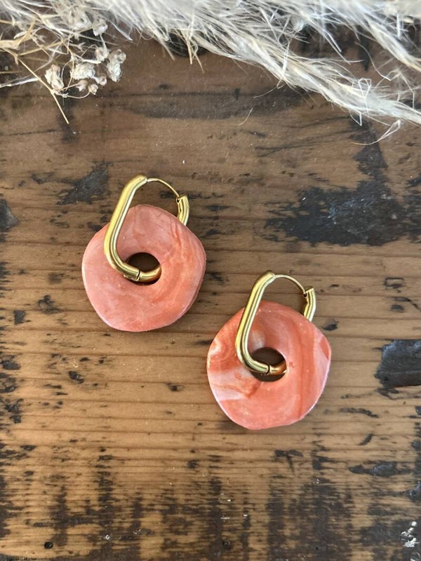 Créole 21x15mm en acier inoxydable. Vendue par paire. La pampille est en argile polymère et vernie.